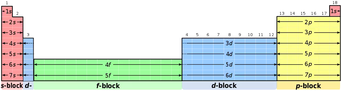 Periyodik tablonun şekli atomların elektron dizilimiyle son derece ilişkilidir. Örneğin, 2. grup elementlerinin hepsi [E] ns2 elektron dizilimine sahiptir. (E burada bir asal gazın elektron dizilimidir) Ayrıca bunlar aynı grupta oldukları için kimyasal özellikleri bakımından önemli ölçüde birbirine benzemektedirler. Daha genel olarak, periyodik tablodaki blok kavramının nedeni s,p,d,f alt kabuklarını doldurmak için gerekli elektron sayısıdır. ( 2,6,10,14…)[1]