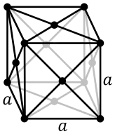 - Yüz merkezli kübik (kısaltılma cF veya fcc ve alternatif olarak kübik kapalı paket veya ccp olarak adlandırılır)
