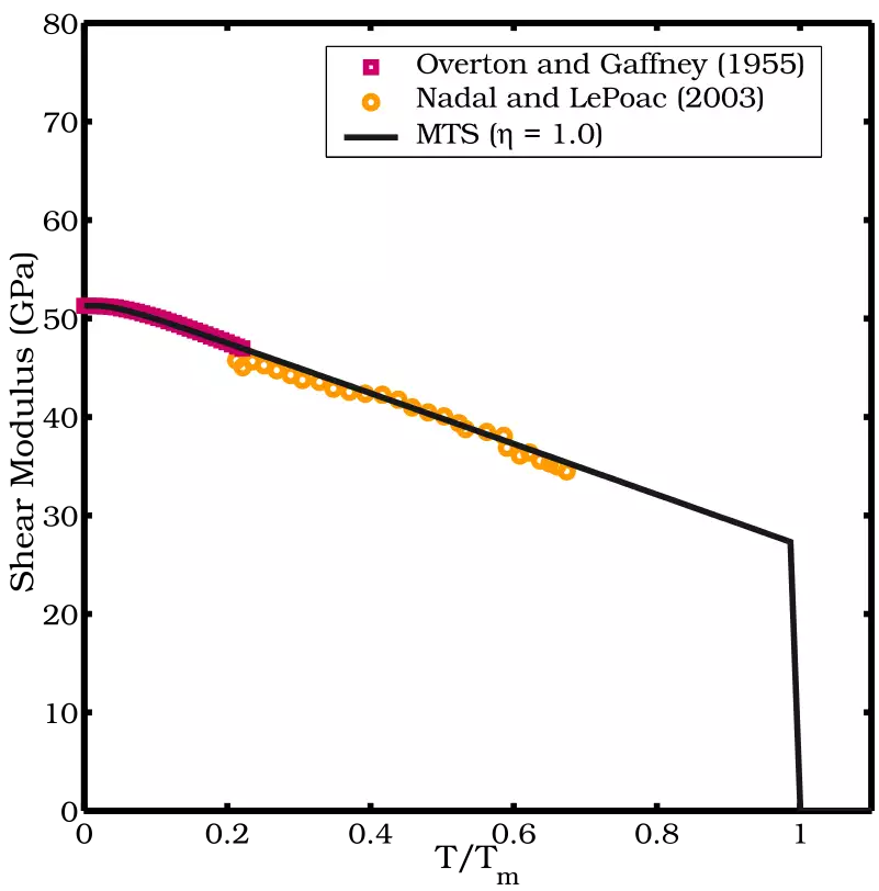 burada, μ0 referans durumdaki kayma modülüdür (T = 300 K, p = 0, η = 1), p basınçtır ve T sıcaklıktır.