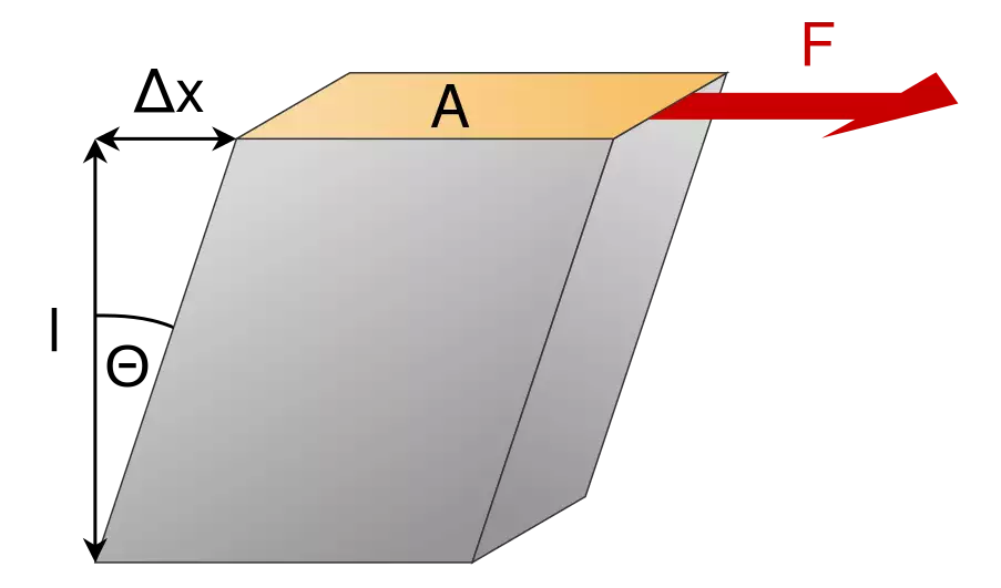 Kayma modülü, bir katı, yüzeylerinden birine paralel bir kuvvet yaşarken, zıt yüzü karşılıklı bir kuvvet (sürtünme gibi) yaşarken deformasyonu ile ilgilidir. Dikdörtgen prizma gibi şekillendirilmiş bir nesne olması durumunda, paralel olarak deforme olur. Ahşap, kağıt ve aynı zamanda tüm tekli kristaller gibi anizotropik malzemeler, farklı yönlerde test edildiğinde, strese ya da gerilmeye farklı malzeme tepkisi sergiler. Bu durumda, tek bir skaler değerden ziyade, elastik sabitlerin tam tensör-ifadesinin kullanılması gerekebilir.