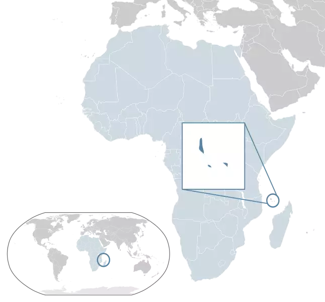 the Komorlar 'nın Konumu (koyu mavi) – Afrika (açık mavi & koyu gri) | |||||
