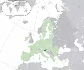 Slovenya 'nın Konumu (koyu yeşil) – Avrupa'da (yeşil & koyu gri) | |||||