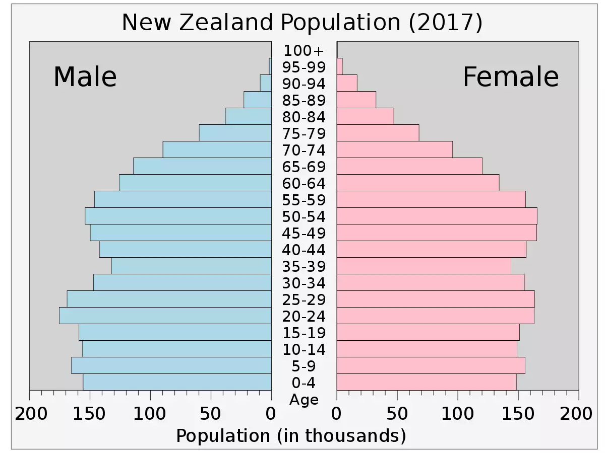 Yeni Zelanda'nın mevcut nüfus piramidi (2017) |